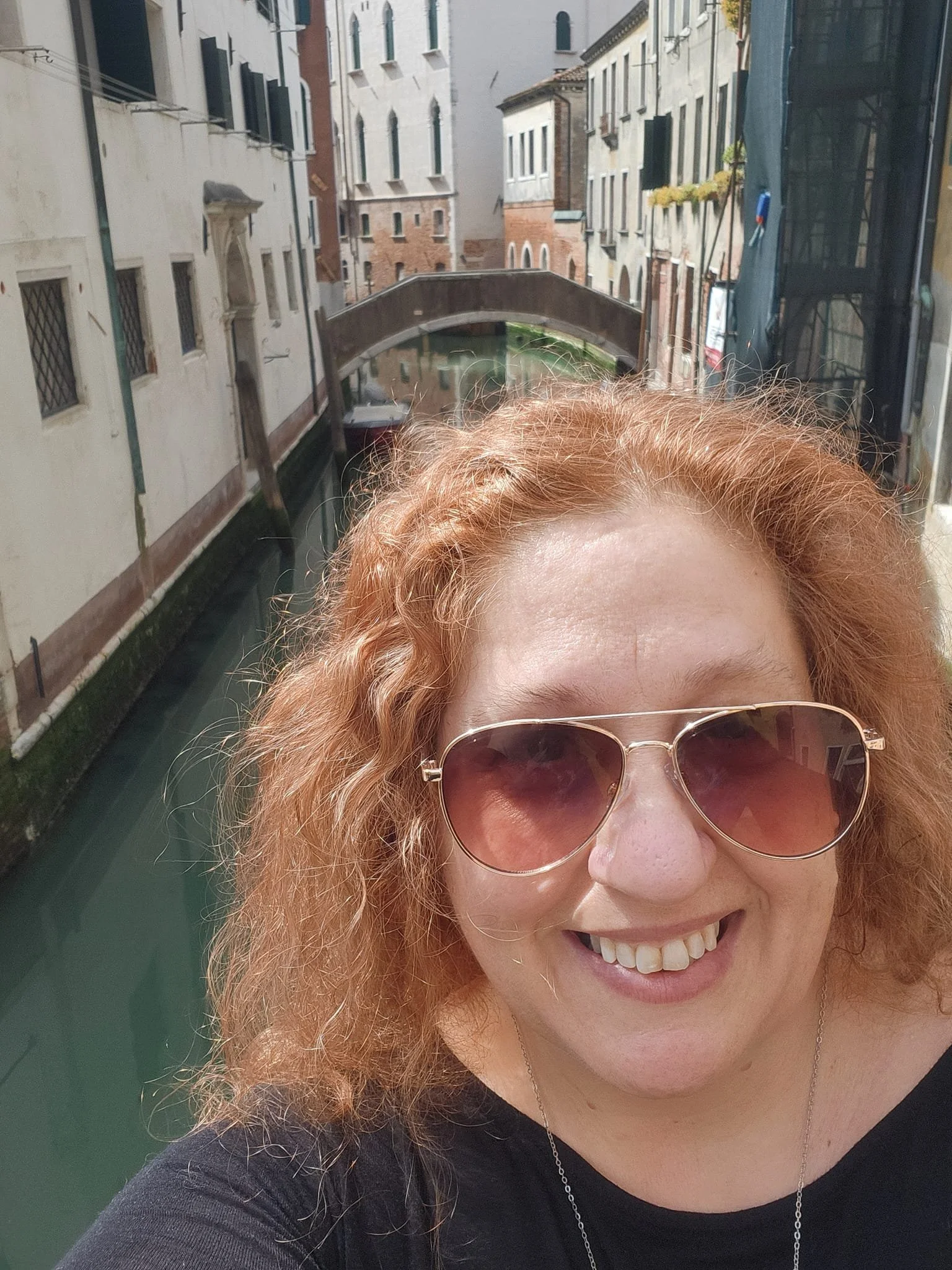 My easel and canvas were calling out from my backpack…”When will you ever have a chance to Plein Air Paint in London again?” Oh this is painful! I told my paints to hush, we had just enough time to snap a selfie with the royal guard, duck back into the tube toward Heathrow airport, make OUR underground connection (for sure the right one this time), get a thorough pat down from European security, and catch the last plane into Venice Italy of the night. We boarded directly behind Cruella De Vil (or maybe her doppelgänger) and her entourage, each of which carried the maximum amount of carry-on, all of which belonging to Cruella. The pilot made his way back in the cabin to help balance the luggage and to scold Cruella for “packing too much!” Cruella and the captain proceeded to have an epic argument in Italian. “Fantastico!” Outstanding! This felt authentic!