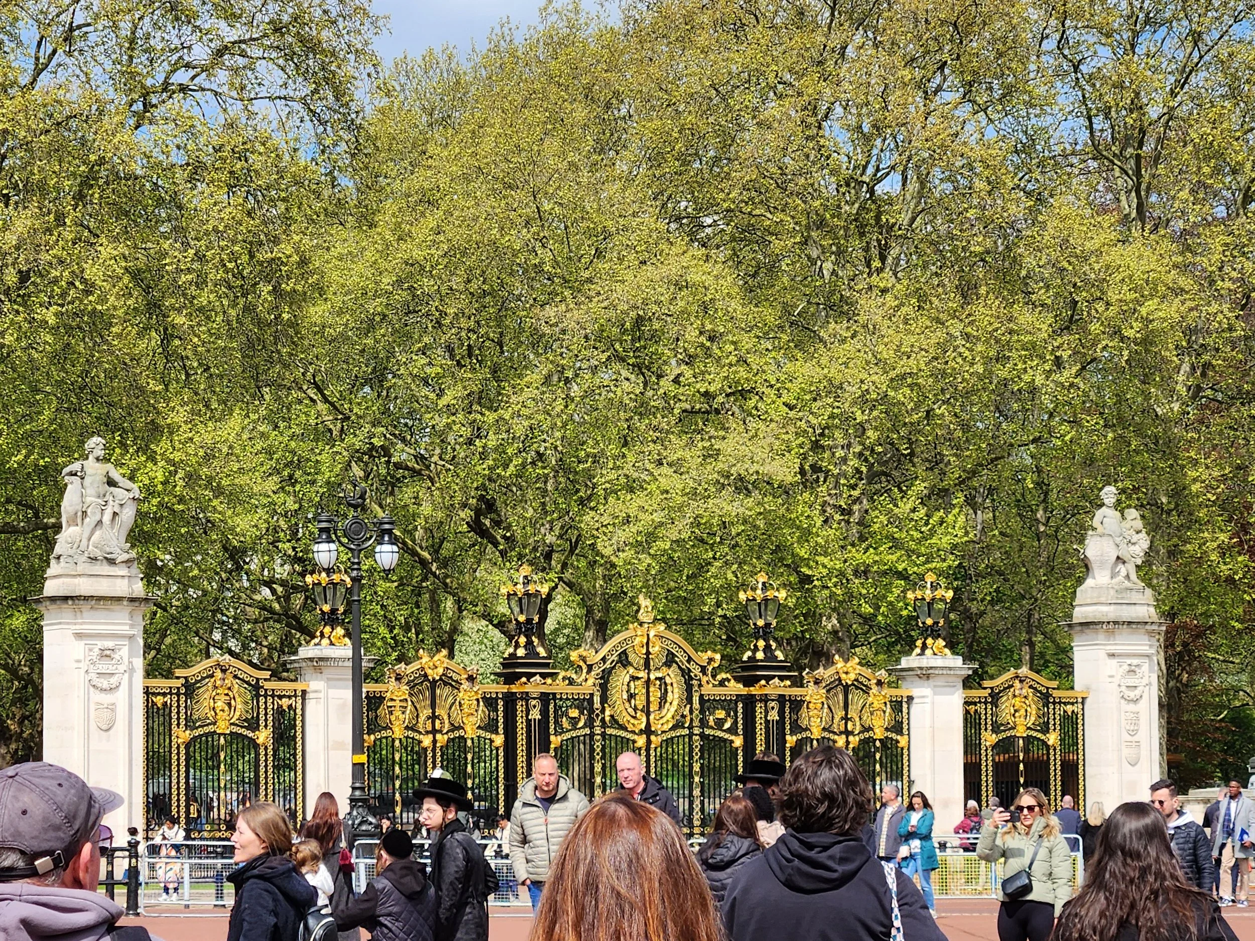 We walked quickly, mostly from adrenaline, toward the buzzing tourists at the end of the promenade. We stopped to take photos of a CASTLE on the Tyburn river, what!?!?, I think Shakespeare wrote about this. We looked but didn’t find any signs that we recognized. We exited the park through golden gates, that resembled a portal, and shined brilliantly in the afternoon sun.