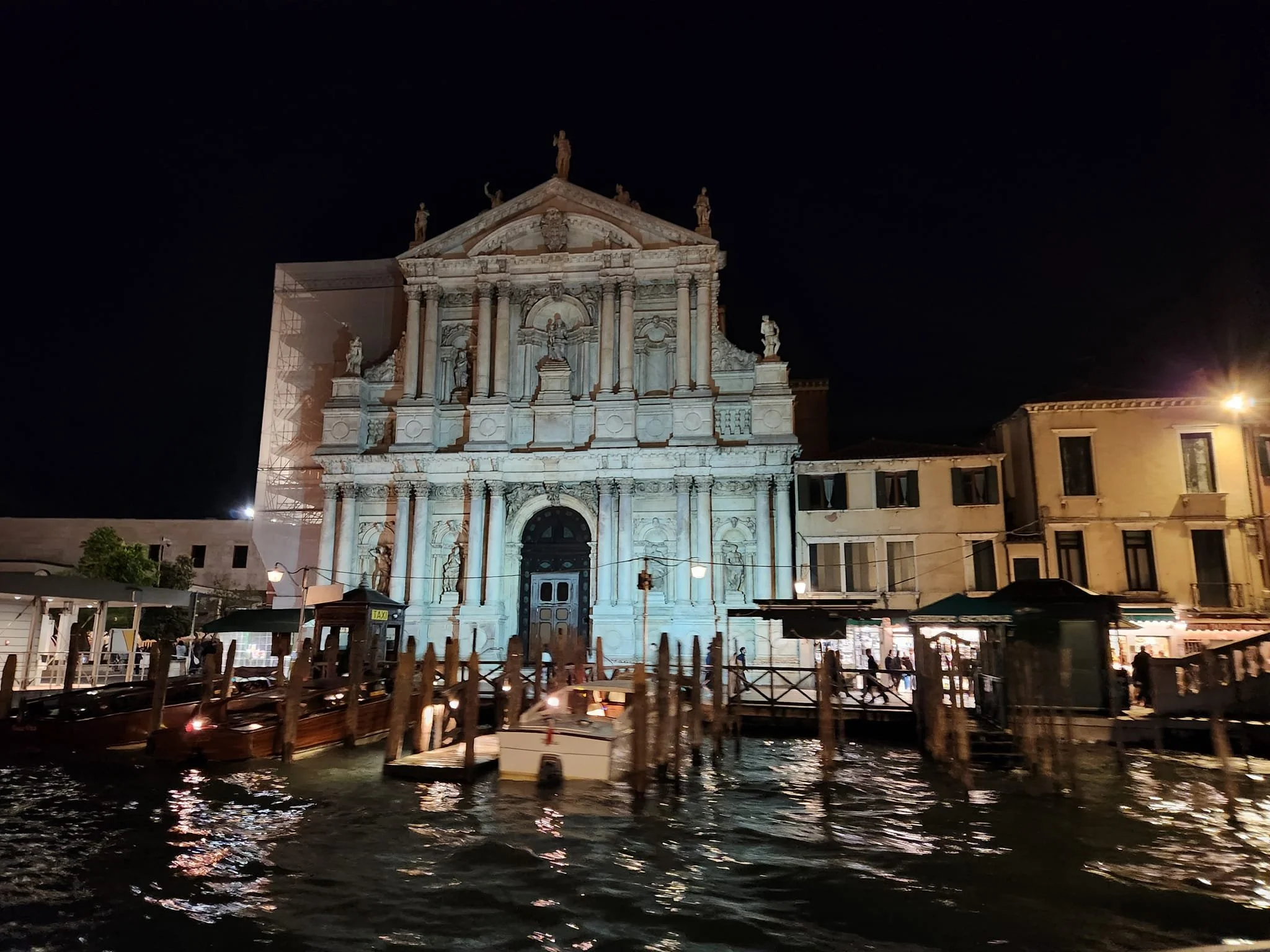 Wheels down and 32 hours awake, we immediately had to fist fight with an Italian self-service machine, to secure bus tickets. We think. We bought something at least, and took the last bus of the night from the airport to the water bus port. The bus driver did not care that our bus tickets did not scan. The only way to get to our Airbnb Casa Mimma was by boat or a very long walk to the Rialto Bridge and then a very long walk back to our neighborhood. We were on the opposite side of the Grand Canal from where we needed to be. Google maps was busy “re-routing” so we bought a boat ticket, from a local agent. So glad to not have to fist fight another self-service machine, we asked for specific instructions. It was late and we were very tired. She directed with an eye roll and a sharp point to go sit at Platform A, at the end of the pier, and wait for Line 1. Our luggage had already seen many miles that day, what was a few more steps. We walked to the dark end of the pier. We waited at Platform A as boat after boat passed by. We wondered if that red light on the dock meant this pier was closed. It did indeed mean that. An hour and several minutes were lost before we made our way to an active platform and caught a boat traveling the Grand Canal. We went straight to the back of the boat to be in the open air and celebrate! Venice at night from the water! Bellisimo!