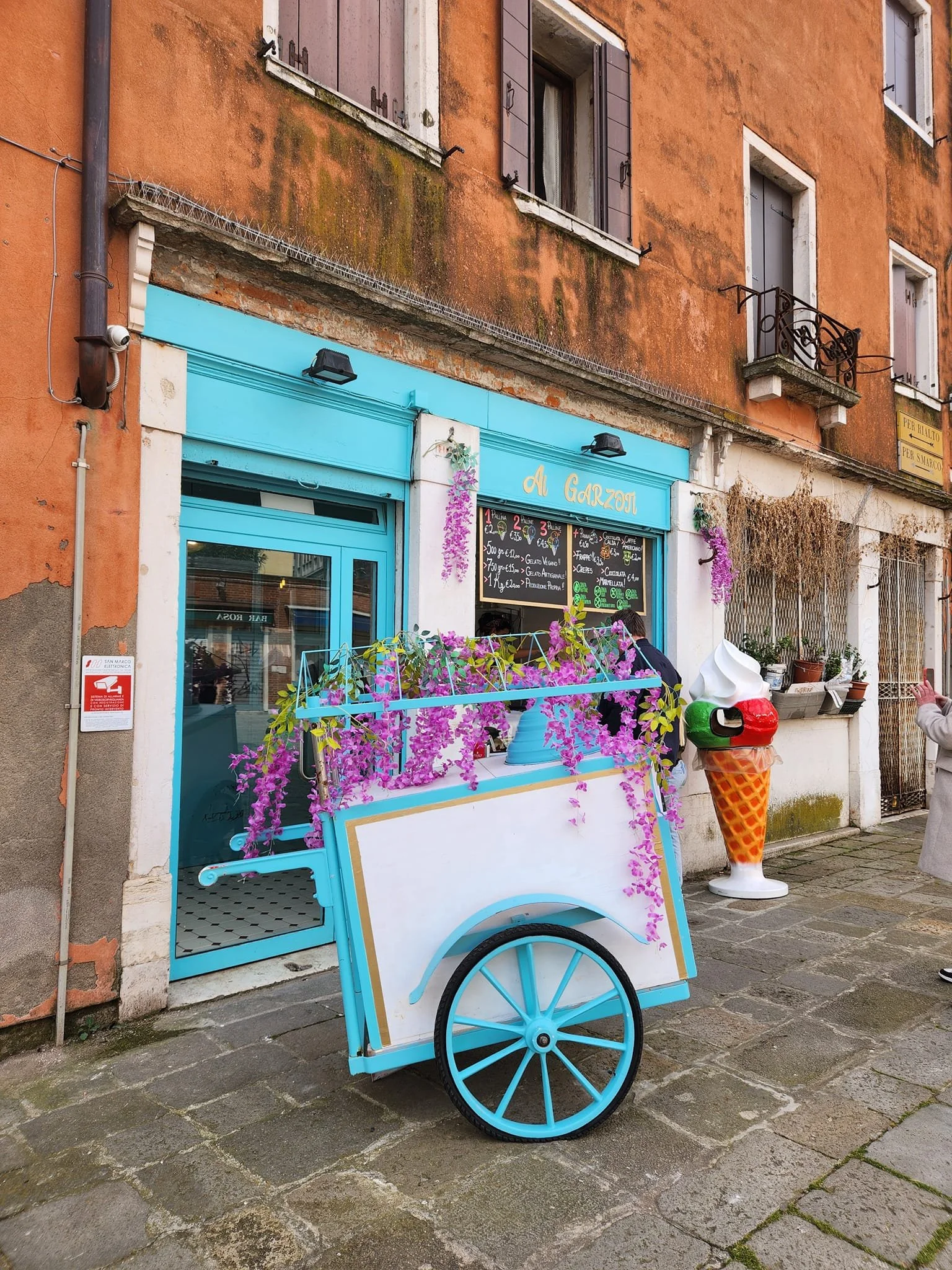 We met a mask maker who beckoned us behind the counter to share her art with us. She spoke very little English and us not nearly enough Italian but we all agree we love eachother and will stop to visit often.